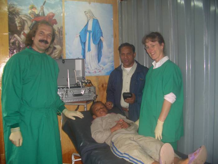 Diese Erlebnisse haben uns von Äthiopien infiziert: Wir haben im nächsten Jahr eine kleine Zahnstation in Adis Abeba (im Orden der Brüder von Mutter Teresa) aufgebaut, damit wir mindestens 1x im Jahr (während unseres Urlaubes) dort den Menschen, die zahnmedizinisch vollkommen unterversorgt sind - sie hatten bis zu unserem Besuch noch nie einen Zahnarzt gesehen - helfen können. Durch eigene Mittel und auch aus Spenden haben wir u.a. einen Koffer mit einem medizinischen Motor, mit dem wir größere Operationen durchführen können, in das Land transportiert. Seit dieser Zeit fahren wir nun jedes Jahr nach Adis Abeba und freuen uns immer wieder dort zu sein, um den freundlichen und liebenswerten Menschen zu helfen. Da wir bis zum heutigen Tage keinen weiteren Oral-/Kieferchirurgen finden konnten, der uns regelmäßig bei unserer Arbeit dort unterstützt (die Bedingungen sind für uns verwöhnte Europäer nicht einfach), wird vom Orden der Missionaries of Charity dafür gesorgt, dass 1x pro Woche, die dringlichsten Schmerzpatienten durch einen einheimischen Zahnarzt versorgt werden. Dieses muss natürlich bezahlt werden, das Geld (auch Spendengelder) dafür nehmen wir von Paderborn mit nach Äthiopien. Jeder Cent kommt direkt - ohne Abzüge! - bei den Menschen an.