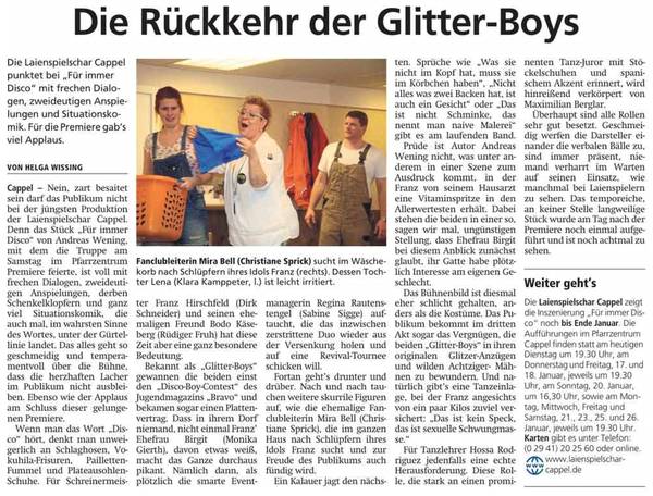 Die Tageszeitung "Der Patriot" berichtet am 15.01.2019 über unsere Premiere.